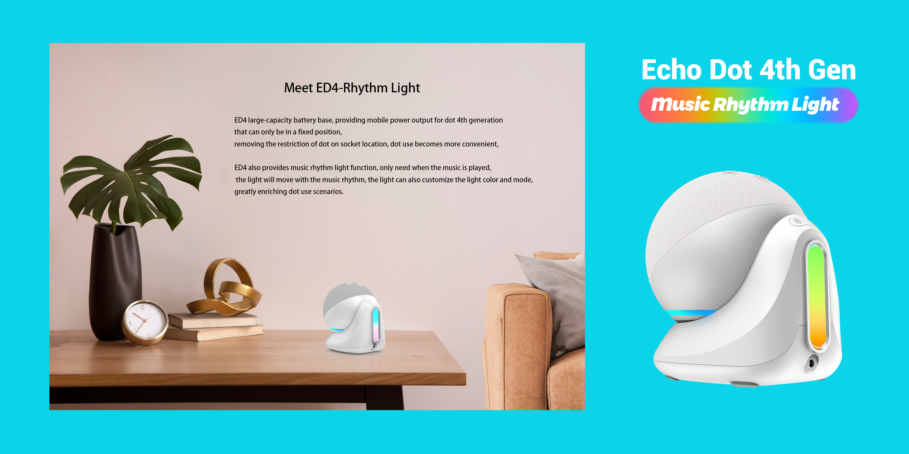 Fanxoo ED4 Music rhythm lights Battery Base for Echo Dot 4th Gen, Portable Charging Power for Echo Dot 4th, Alexa Speaker Auxiliary Power Accessories (Not Include Echo Dot 4th speaker and Charging cable)