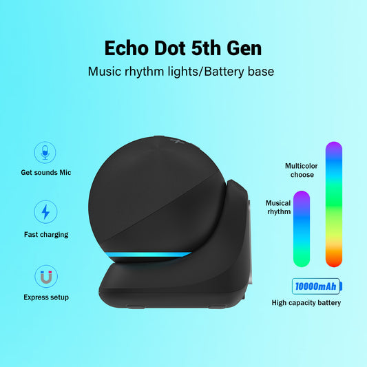 Fanxoo ED5 Music rhythm lights Battery Base for Echo Dot 5th Gen, Portable Charging Power for Echo Dot 5th, Alexa Speaker Auxiliary Power Accessories (Not Include Echo Dot 5th speaker and Charging cable)