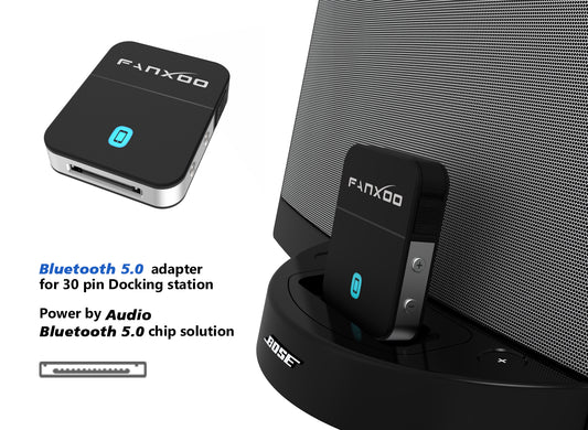 Fanxoo 30 Pin Bluetooth Adapter 5.0 Audio Mini Bluetooth Receiver For Bose Sounddock JBL YAMAHA IPhone IPod Jack Analog Speaker