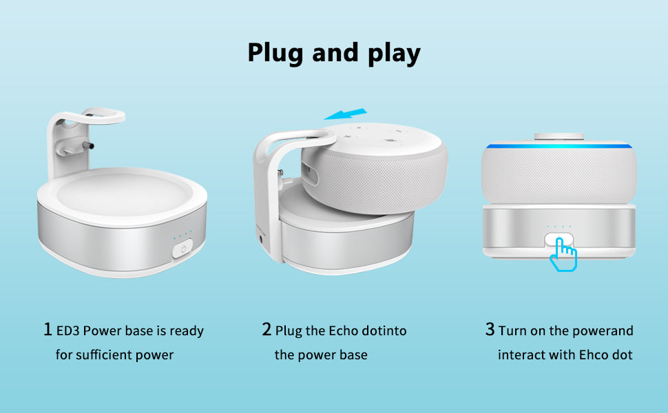 - 【Plug and Play】The integrated design of the ED3 battery base and the dot 3 generation voice speaker is simple to use. It can battery the dot 3 generation while charging. The dot 3 can be used in the battery base for a long time without removing it.