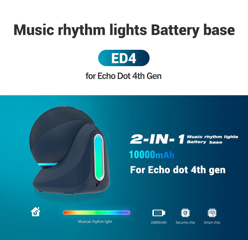 Fanxoo ED4 Music rhythm lights Battery Base for Echo Dot 4th Gen, Portable Charging Power for Echo Dot 4th, Alexa Speaker Auxiliary Power Accessories (Not Include Echo Dot 4th speaker and Charging cable)