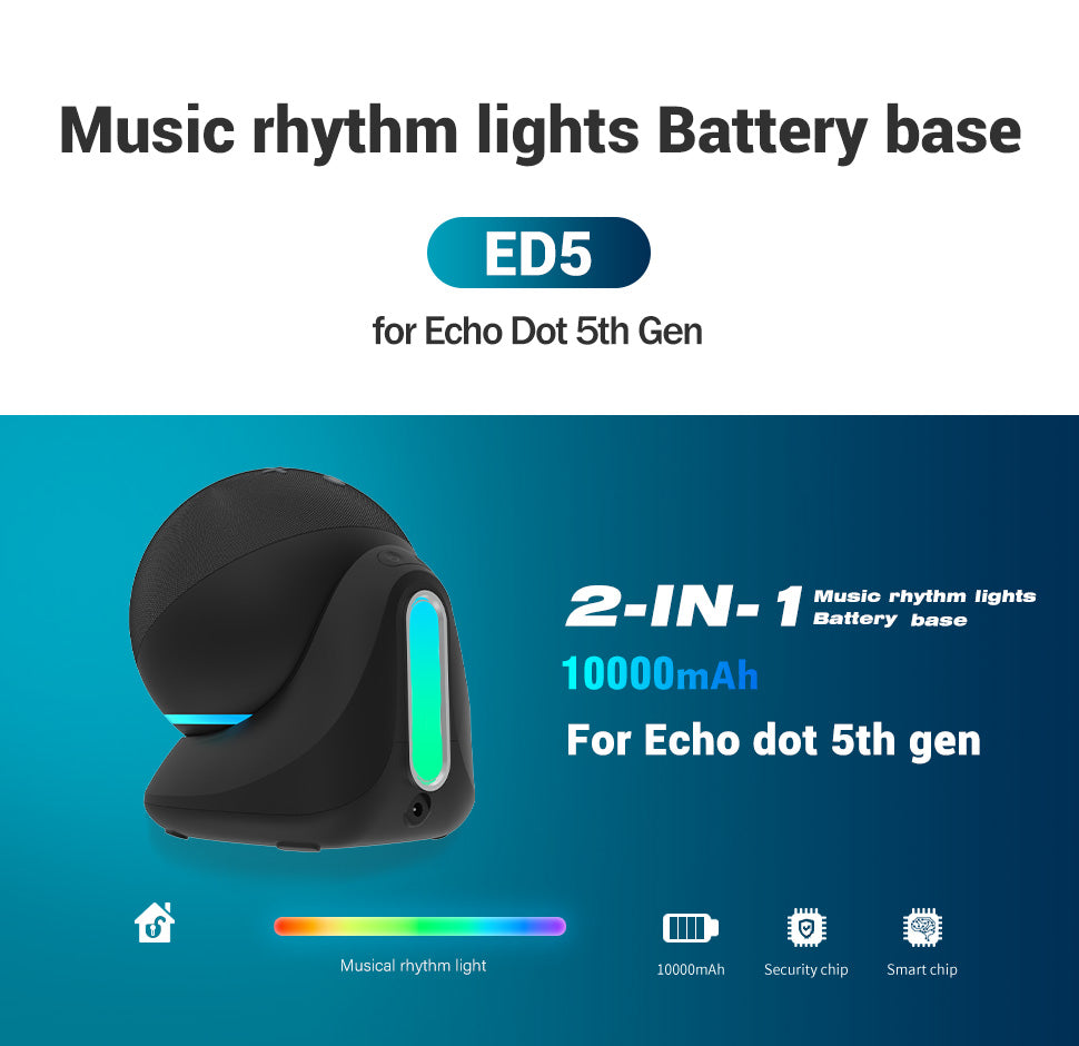- 【Restriction lifted】 Rechargeable battery base ED5 is a removable battery base specially designed for Echo dot 5th generation, which allows Ech dot 5th generation to interact with Echo dot 5th generation anytime, anywhere without being restricted by the position of the plugged cable.