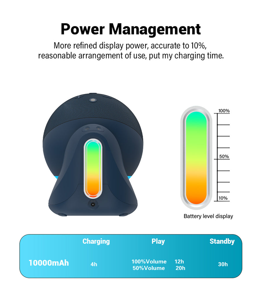 - 【Fast charging and long-lasting battery life】Fast charging function, 10000mAh capacity can be fully charged in 4 hours, long-term battery life and standby, 10000mAh capacity can work continuously for 10 hours at the maximum volume, normal use can satisfy a whole day,