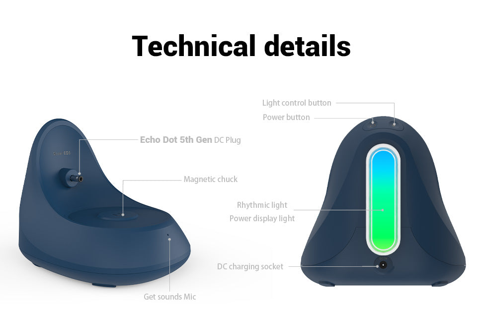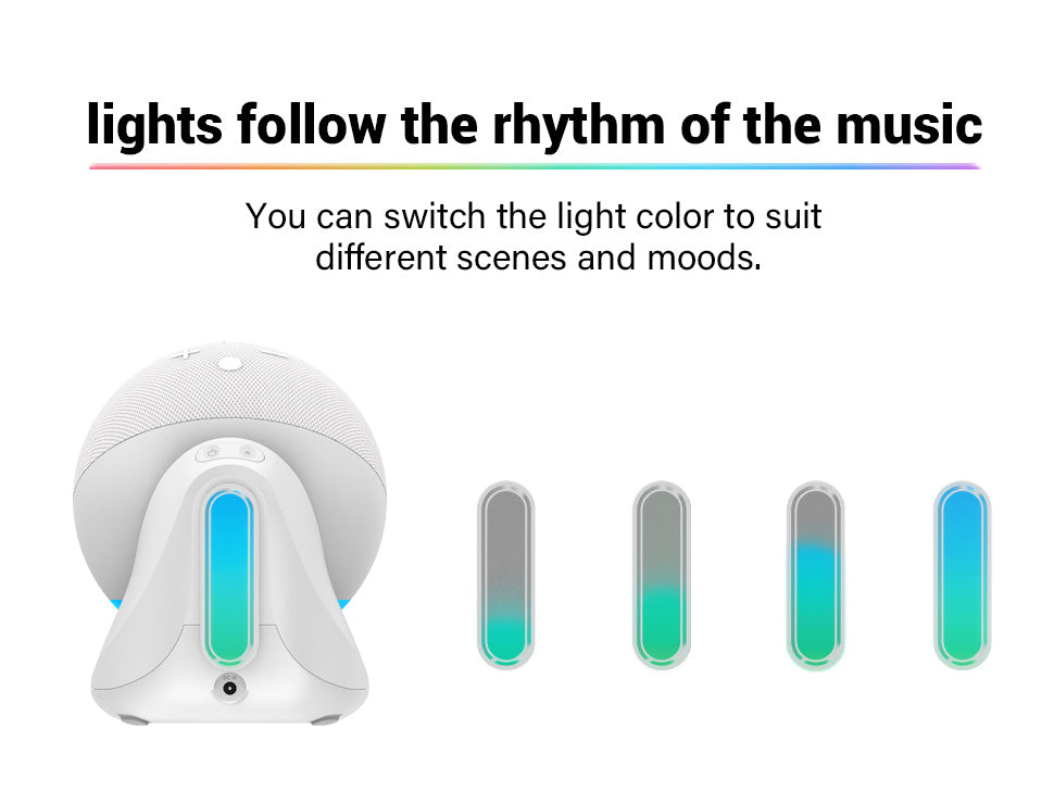 - 【Music rhythm lights】ED5 also provides a light on music rhythm, only when playing music,The lights move to the rhythm of the music, and the lights can customize the light colorand mode, the light can also show the power level more accurately. Make the Echo more agile.