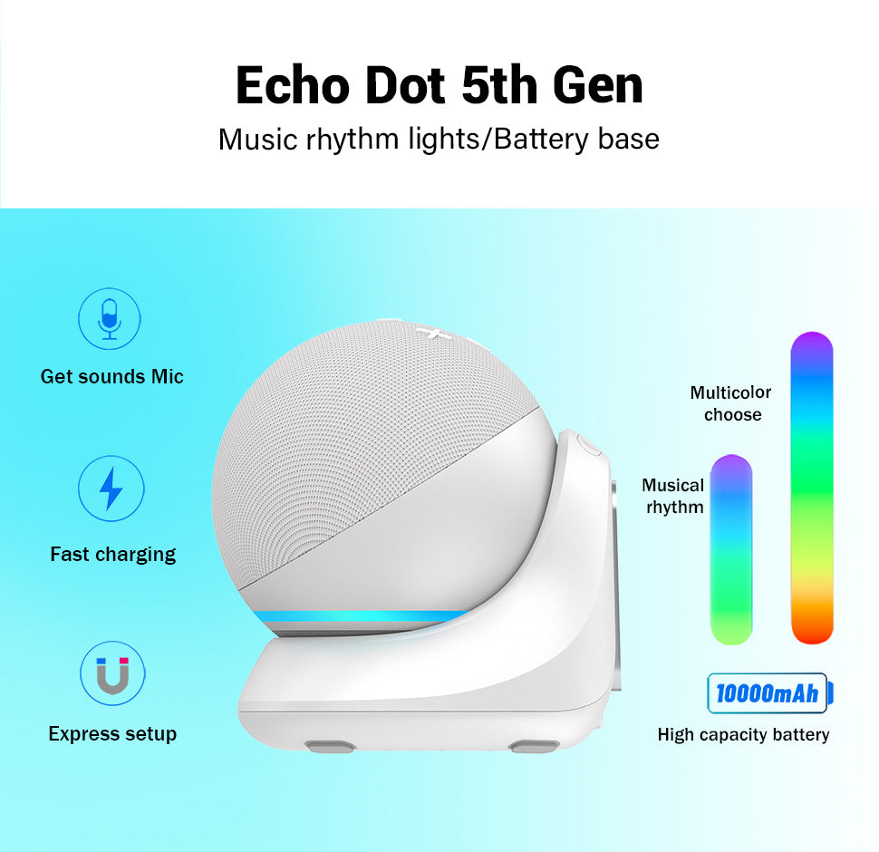 Fanxoo ED5 Music rhythm lights Battery Base for Echo Dot 5th Gen, Portable Charging Power for Echo Dot 5th, Alexa Speaker Auxiliary Power Accessories (Not Include Echo Dot 5th speaker and Charging cable)