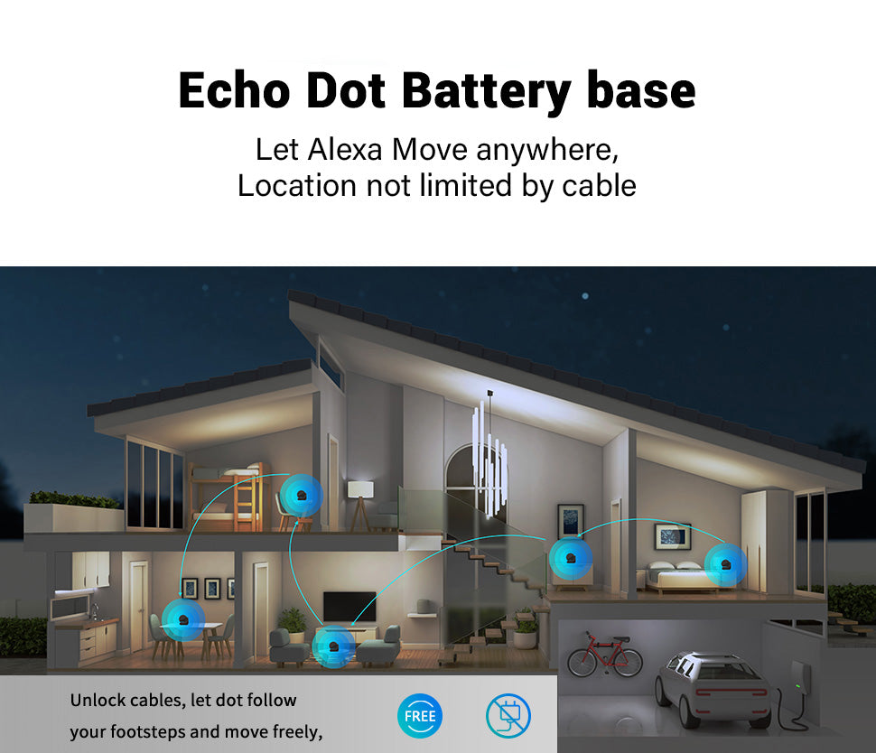 - 【Restriction lifted】 Rechargeable battery base ED5 is a removable battery base specially designed for Echo dot 5th generation, which allows Ech dot 5th generation to interact with Echo dot 5th generation anytime, anywhere without being restricted by the position of the plugged cable.