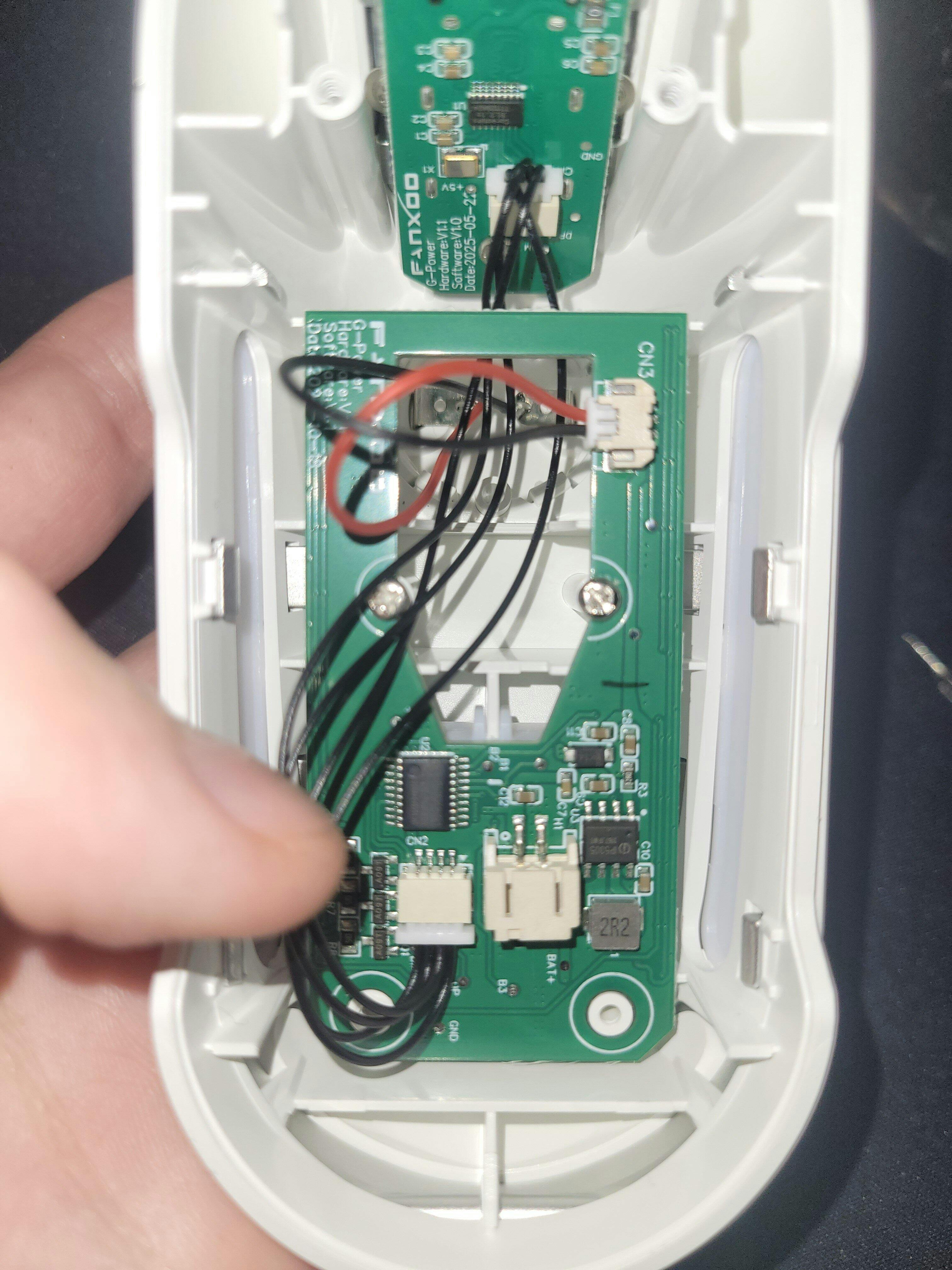 The charging module is designed to directly connect the mouse with the charging base, and the module is installed in the mouse.