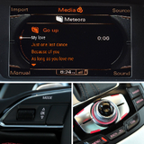 Using original steering wheel buttons and head unit buttons control to play, browse, skip and control Apple Music playlist.